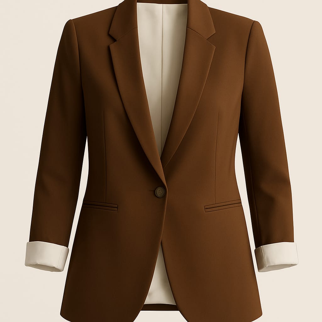 Blazer elegante dal taglio moderno, realizzato in tessuto morbido e strutturato.
